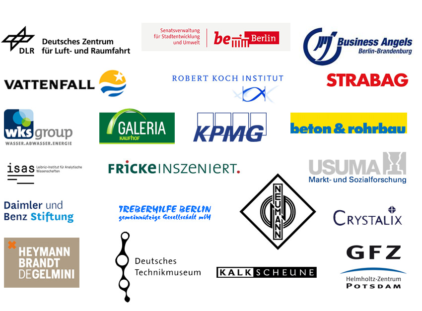 Deutsches Technikmuseum | Vattenfall, Rohde & Schwarz | Robert Koch Institut | Deutsches Zentrum für Luft- u. Raumfahrt | Neumann Microphone | STRABAG | Business Angels Club: IBB |Crystalix Evolution GmbH - Lufthansa | Beton & Rohrbau | Treberhilfe | RKB | XXL Eventservice | USUMA | Senat für Stadtentwicklung Berlin I BLP: Galeria Kaufhof | ETS | Stilkunde | DEEI | Kalkscheune | EUROARTS MEDIEN | GM Anwaltskanzlei | Conba | GFB | Autohaus GAWE | KPMG: METIS | SPREE-RADIO: STAR FM | |